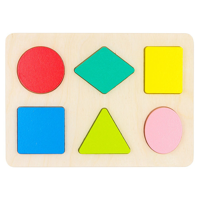Игрушка сочетает в себе головоломку и традиционную рамку-вкладыш. Возможны различные комбинации элементов и расположения фигур на доске — ребенок выберет интересный вариант для себя.